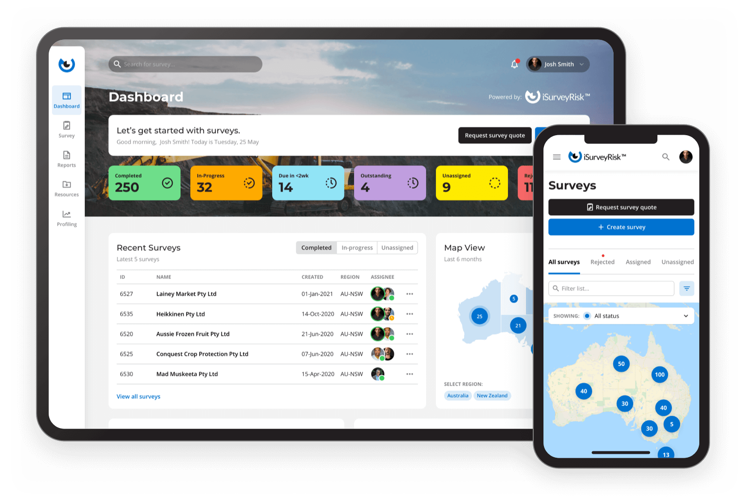 iSurveyRisk™ gives you the ability to conduct short, on-site property surveys via tablet, mobile or laptop. Then give your client an on-the-spot assessment of their key property exposures.